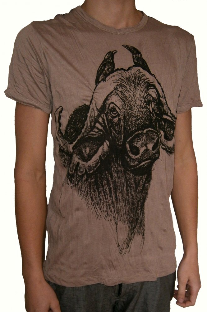 PÁNSKÉ TRIČKO SURE - BUFFALO je ušito v klasickém pánském střihu, s kulatým výstřihem a krátkými rukávy. Na přední i zadní straně trika je originální designový obrázek.