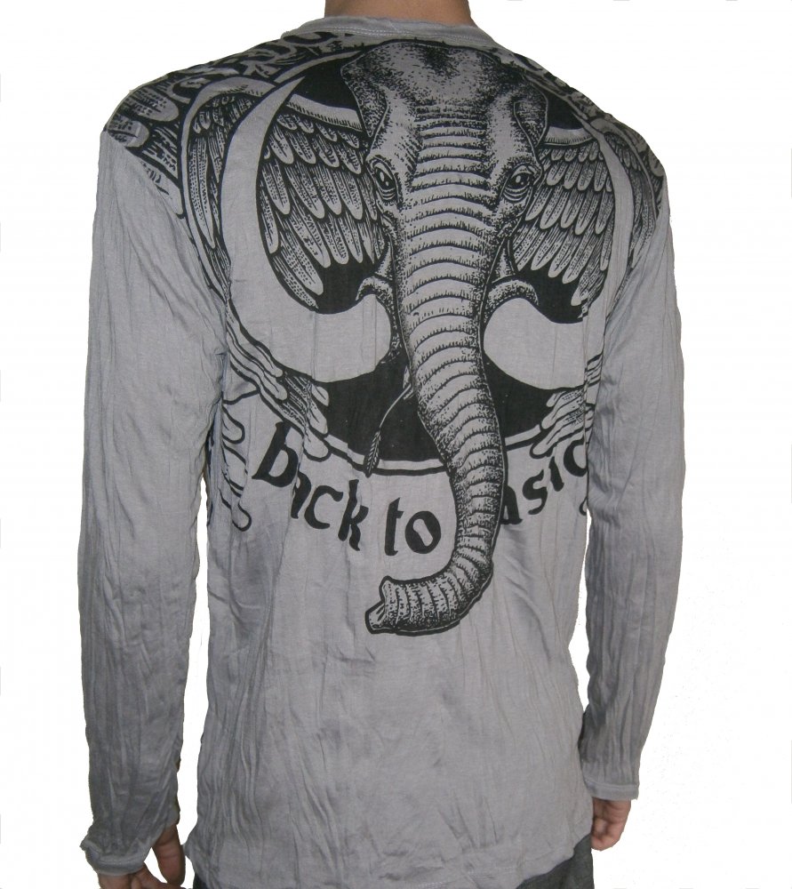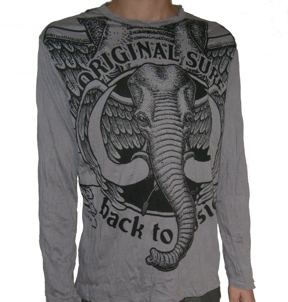 PÁNSKÉ TRIKO SURE - ELEFANT je ušito v klasickém pánském střihu, s kulatým výstřihem a dlouhými rukávy. Na přední i zadní straně trika je originální designový obrázek.